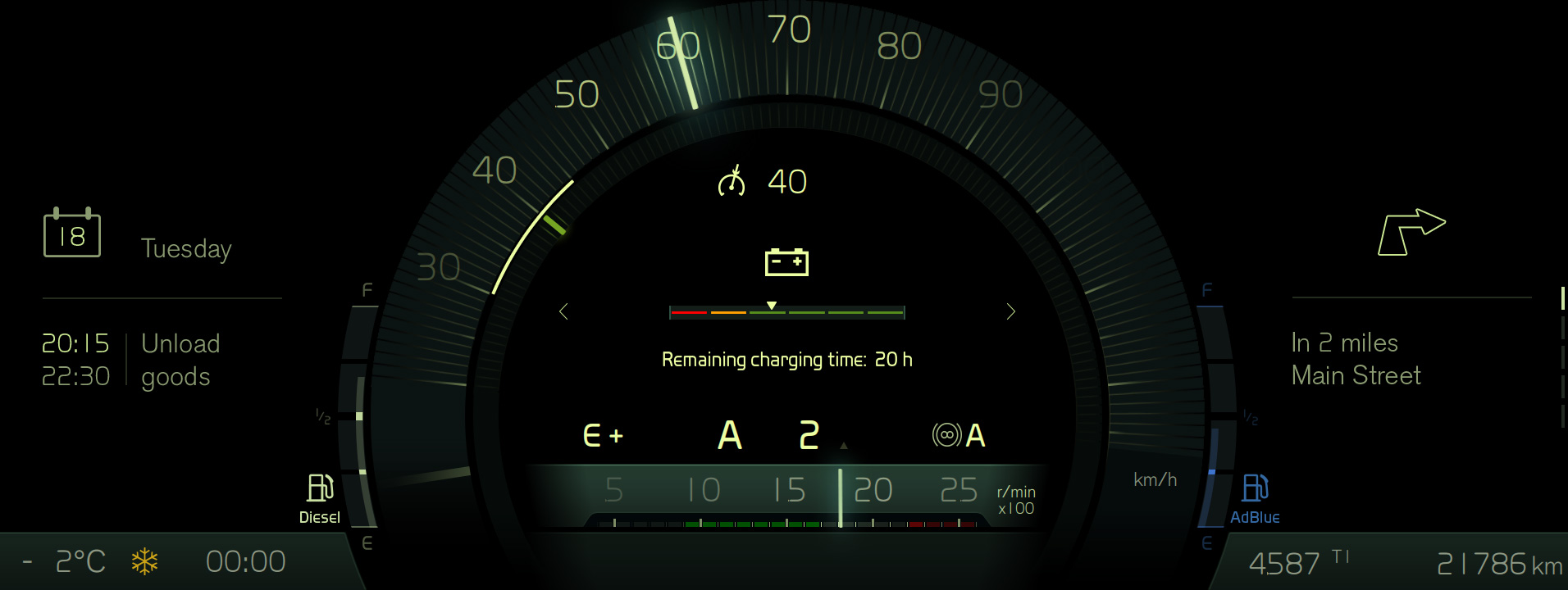 The wireframe stage was crucial to explore different approaches to the new design. This would be the first digital display behind the steering wheel of a Volvo truck, and it needed be meticulously laid out to ensure optimal usability and safety.